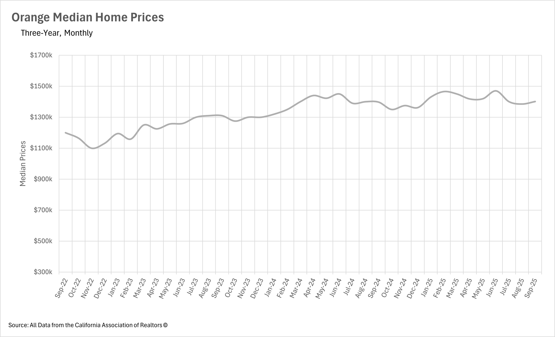 Orange County's housing market is showing signs of reaching a pricing equilibrium after months of volatility. September 2025 saw the median single-family home selling for $1,401,250, representing a minimal 0.27% increase compared to September 2024's $1,397,450. This near-flat year-over-year comparison represents a significant departure from the double-digit growth rates seen throughout much of 2024. The median price also demonstrated modest month-over-month growth of 1.17% from August's $1,385,000, suggesting that while downward pressure persists, prices may be stabilizing around current levels. This equilibrium point appears to reflect where buyer demand and seller expectations finally meet after months of adjustment to the new market realities.