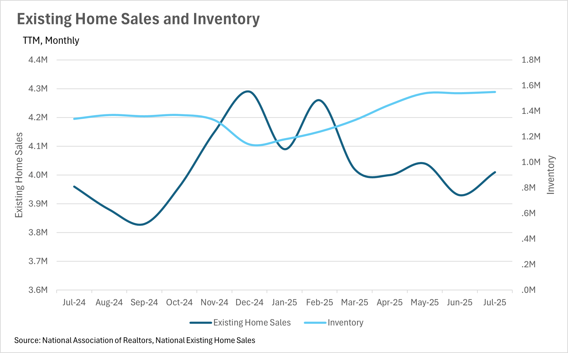 • Existing home sales remain slightly higher than they were last year, while we observe nearly a 16% year-over-year increase in available inventory.